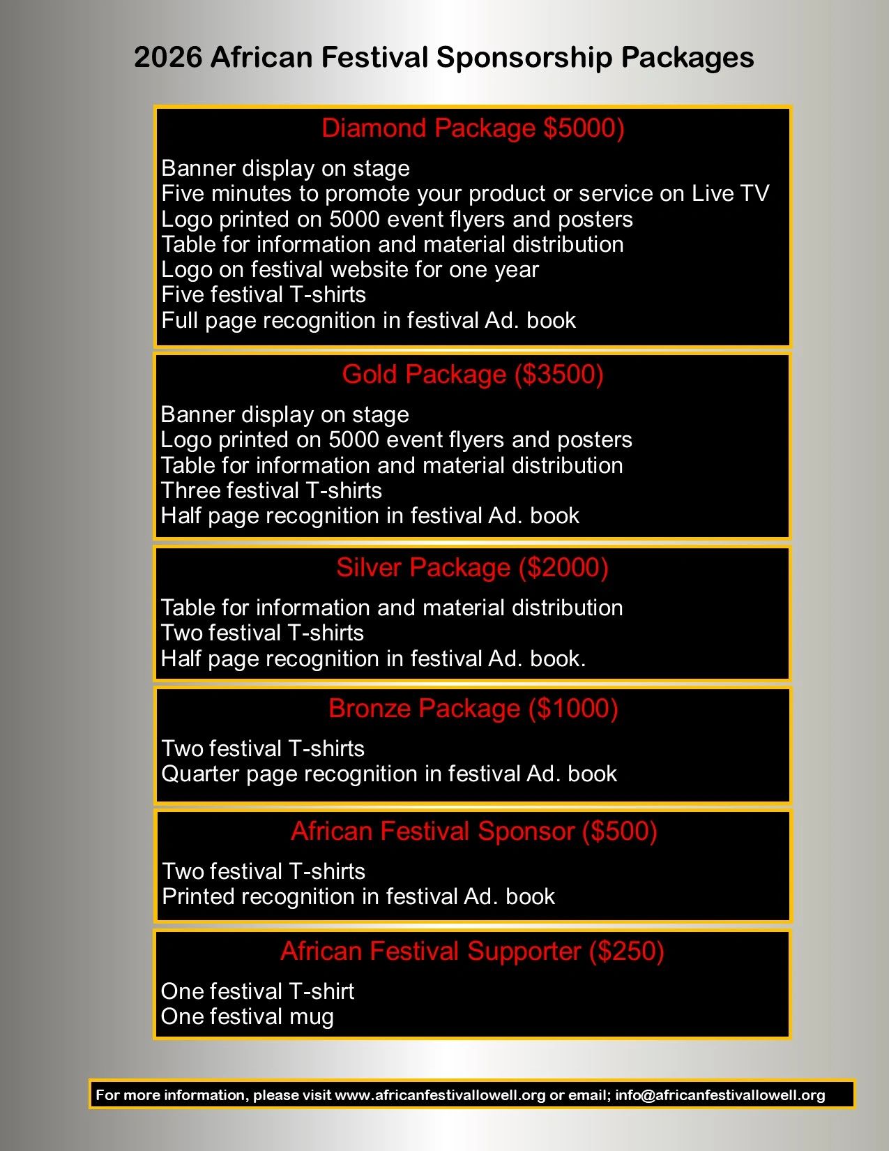 Your support, sponsorship and contributions enable us meet our financial obligations.